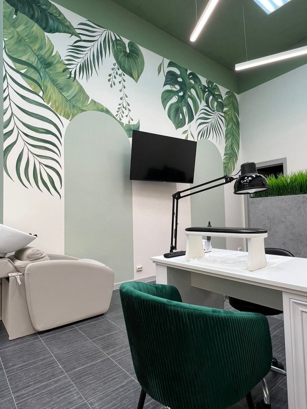 Атмосфера располагает к доверию, обычно я настороженно пробую новые для себя места, но тут сразу чувствуется отношение к гостям (именно так называли всех посетителей, не клиенты а гости, приятно). Салон чистый, очень красивый и уютный. огромные высоченные потолки, стена расписана художником (загляденье).